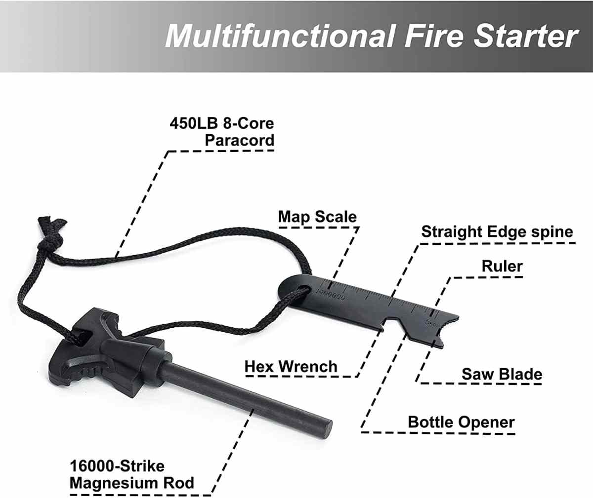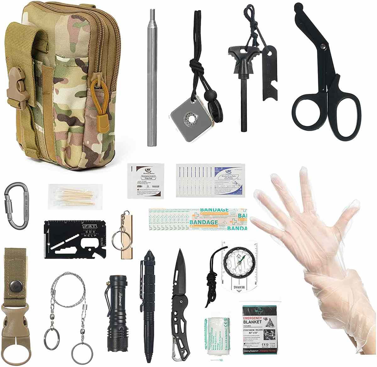 Convenient & Portable - Tactical flashlight, tactical pen, bracelet, compass, whistle, tactical knife, etc., are made of high-quality material, providing excellent safety and durability, meeting emergency and medical needs, making your camping, wilderness survival or hiking trips easier and more convenient, without worrying about getting lost