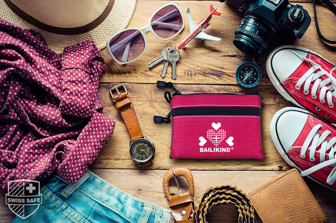 Application of Red First Aid Pocket with double zipper: Great emergency kit for daily use or outdoor adventures like hiking and camping.