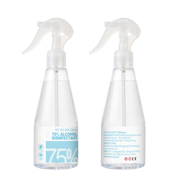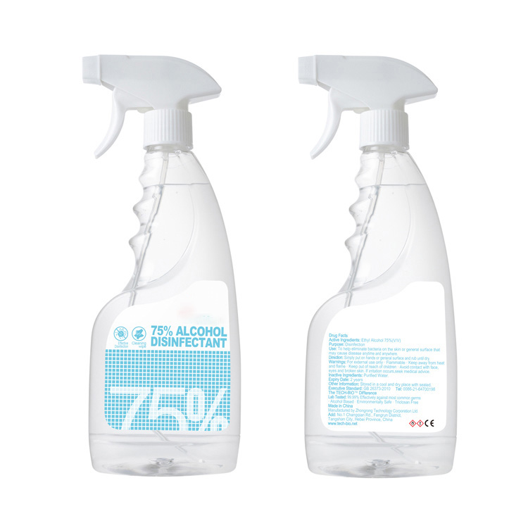 75% alcohol, sterilization rate 99.99%.Techbio hypochlorous alcohol hand sanitizer disinfectant spray effectively kill many kinds of bacteria. Testing confirmed that the effective killing of hands, common four categories, safe and secure.